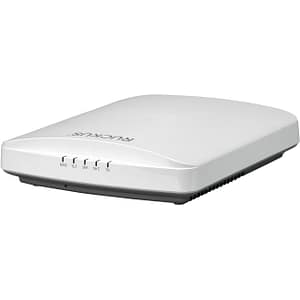 Ruckus R850 dual-band (5GHz and 2.4GHz concurrent) 802.11ax wireless access point, Ultra-High Density performance, 12 spatial streams, adaptive antennas, PoE support. Includes adjustable acoustic drop ceiling bracket. Two Ethernet ports with 1GbE and 5Gbe. Does not include power adaptor
